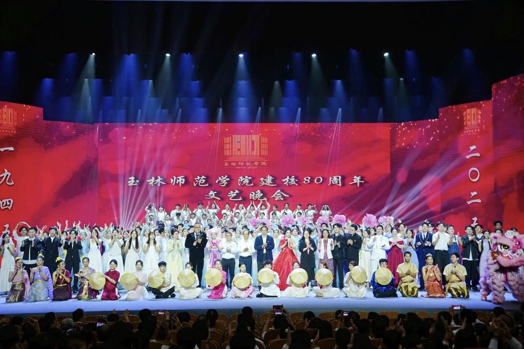 灯光璀璨映初心,挂榜山下颂征程。11月8日晚,“八秩桃李满,一生玉师情”80周年校庆文艺晚会在学校东校区演示厅温情启幕。特邀嘉宾,学校领导、党委常委,五湖四海奔赴而来的校友及在校师生齐聚一堂,在歌舞与光影中回望80载办学历程,共叙玉师情。晚会以校史为时光航线,从初心启航到砥砺奋进、从历史回响到未来展望,用18个节目串联起玉师人的青春记忆,赞颂玉师扎根桂东南大地办学80年的辉煌历程。初心启航:在回溯中唤醒玉...